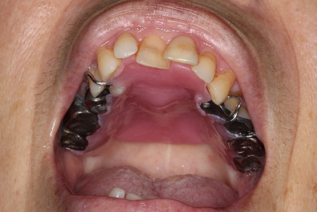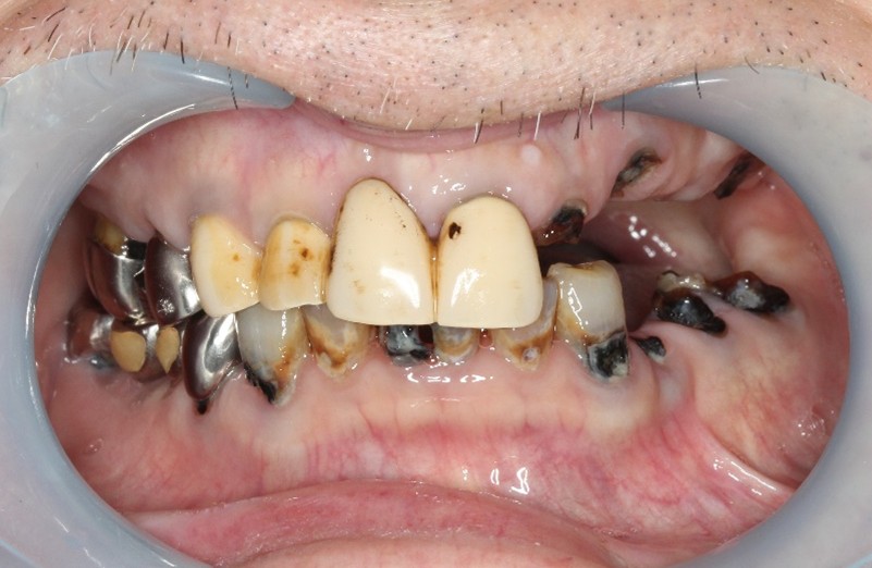 リハビリ実施中の患者様の約70%は口腔状態が不良であり5),臨床現場でも実際に口腔状態が不良な方々が多いです(図1)。不良な口腔状態の原因は多岐にわたり、急性期入院中に生じた義歯不適合や、口腔乾燥など、全身状態に起因する問題も確かに存在します。しかし、ここで注目すべきは、病前から口腔状態の不良を放置していたことが問題の本質であるという点です。