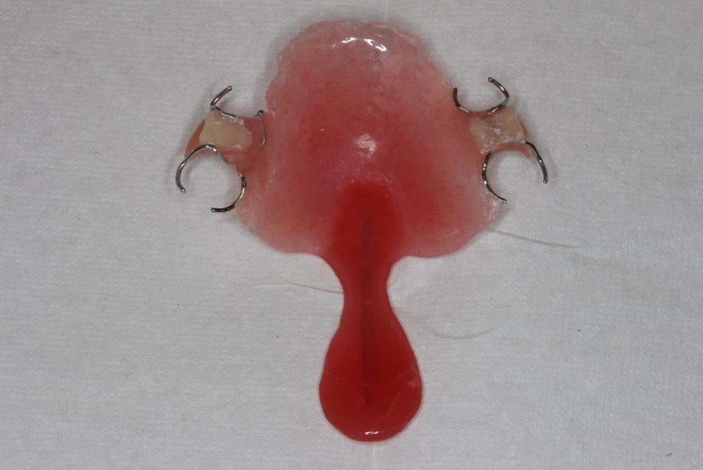 機能: 構音の明瞭度を上げるとともに、食物や水分が鼻咽腔へ逆流するのを防ぐこと(鼻咽腔閉鎖)を目的に使用されます。硬い口蓋床部分から伸びる挙上子が軟口蓋を押し上げる構造になっています(図4)。
