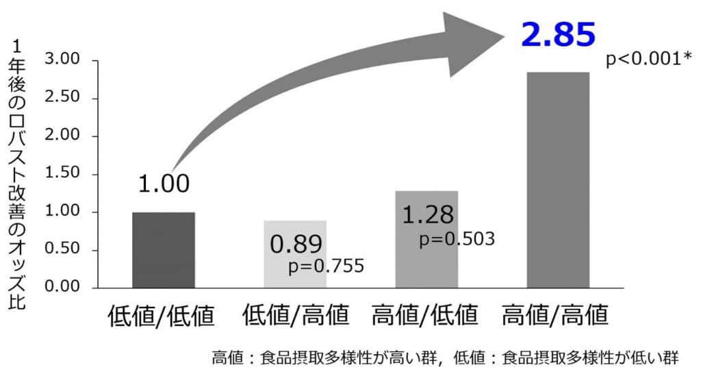 継続して食品摂取多様性が高いことは,ロバスト・改善に関連していた(図1).