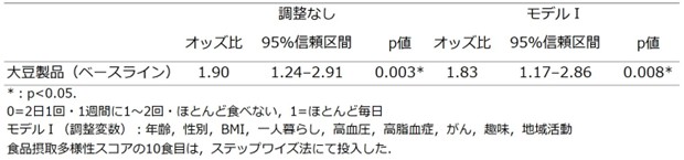 ベースラインのDVS10食品のうち,ベースラインで大豆製品の摂取頻度が多いことはロバスト・改善に関連していた(表2).